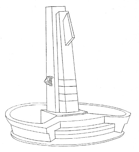 La fontana con il monumentale fascio che si trovava al centro della villa in Piazza dell'Impero